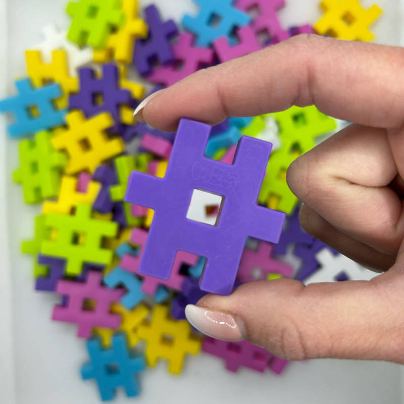 - The set includes 100 blocks in beautiful and vibrant colors with a predominance of pink and purple,