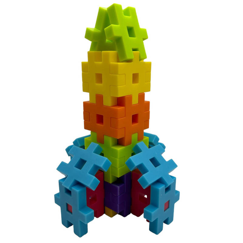 - The set contains 110 blocks in pretty colors packaged in a practical container with a handle,