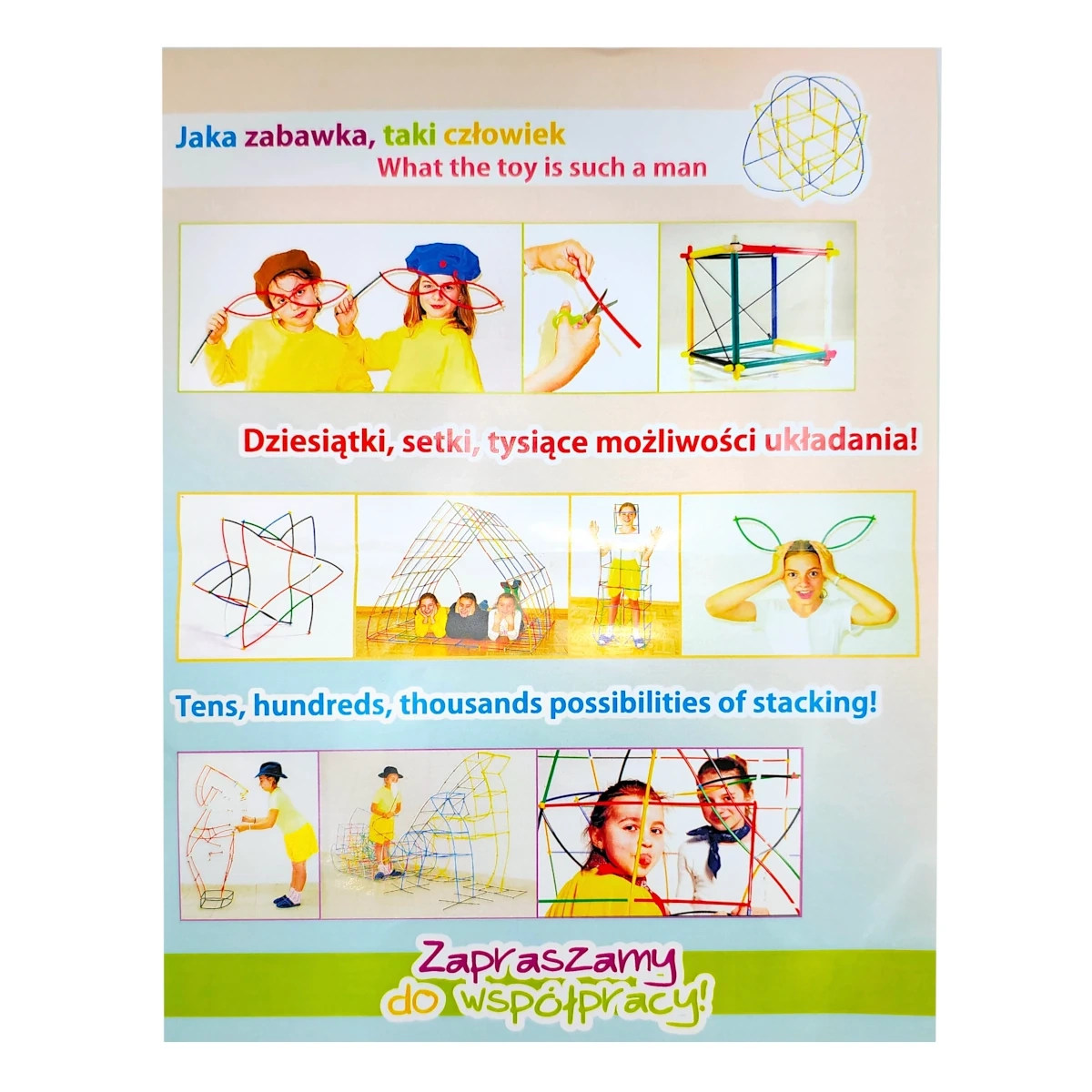 - Number of elements: 1000 (540 straws 20 cm long + 60 straws 10 cm long + 400 cross connectors).