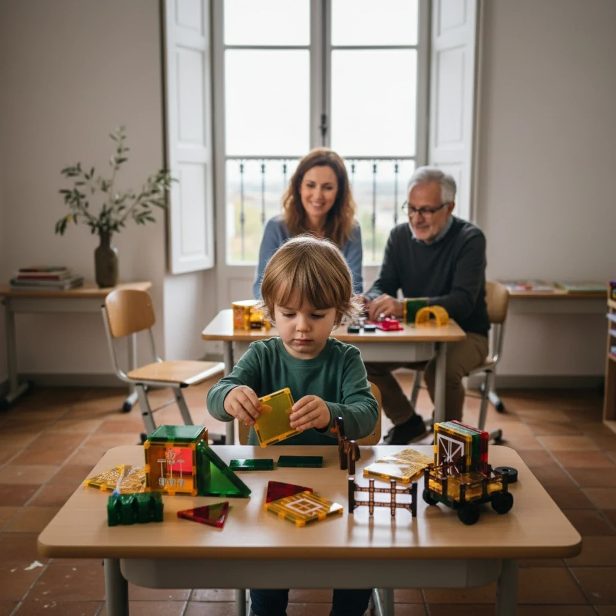 This farm set adds a narrative dimension to magnetic building: children construct the barn, then populate it with cow, horse, and sheep figures, developing spatial reasoning and storytelling at once. Arch tiles — rarely found in entry-level sets — introduce curved geometry and teach children about rounded structures like gates and rooftops. Discover more in our magnetic tiles collection.