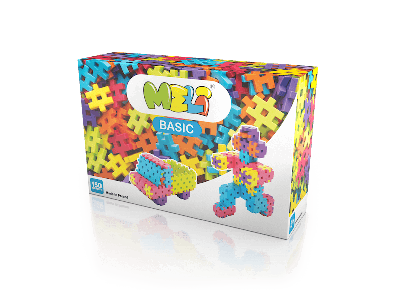 - As many as 150 elements enclosed in a handy box. Meli Basic construction set of building blocks is ideal for every boy and girl. The set also includes instructions in the form of a booklet, which will inspire the little builder.