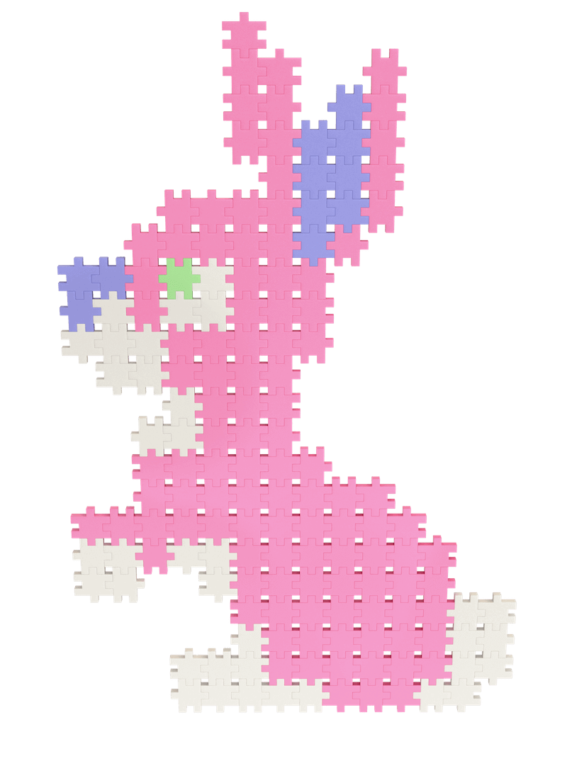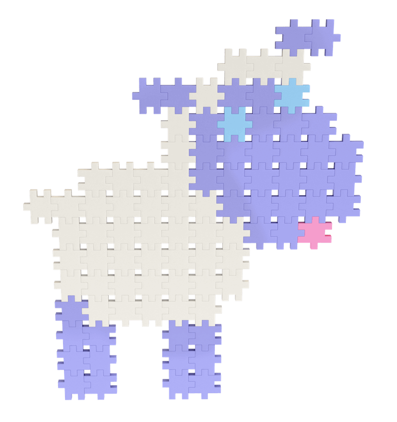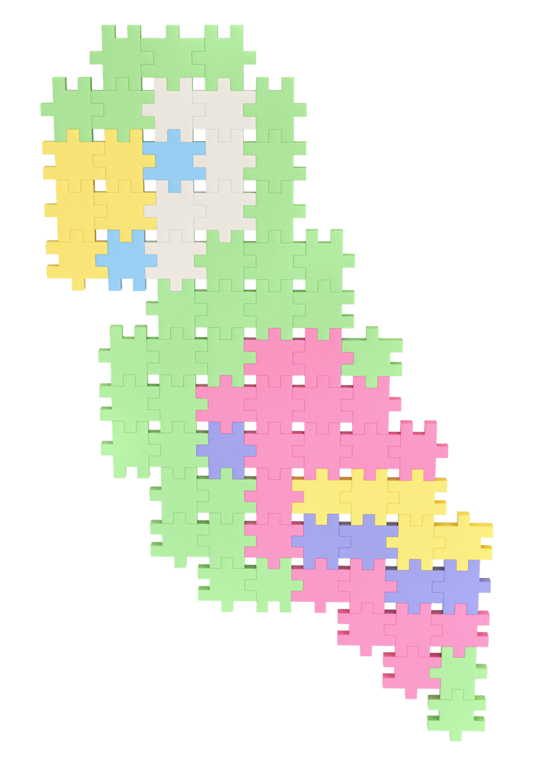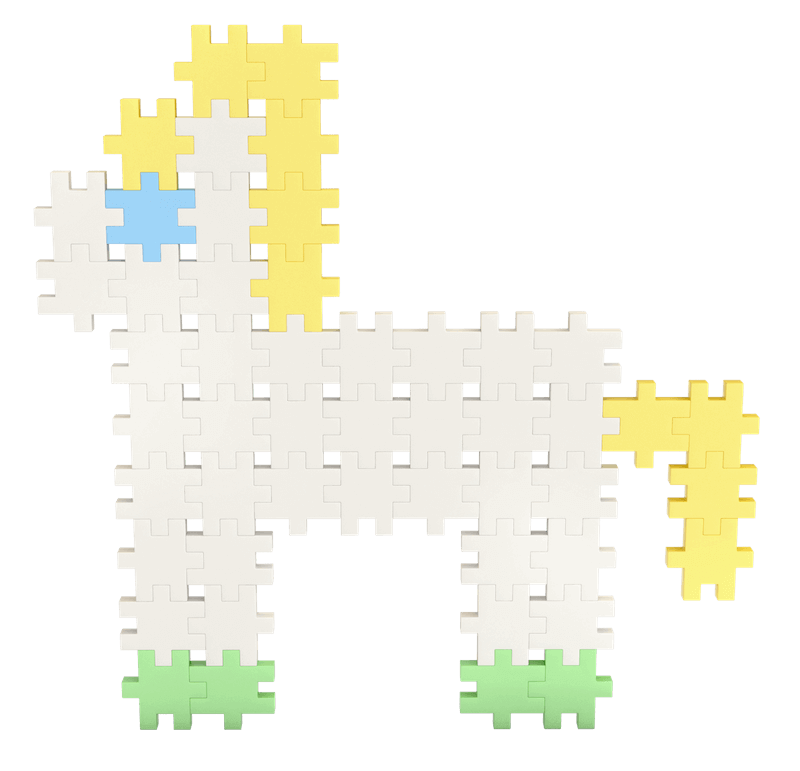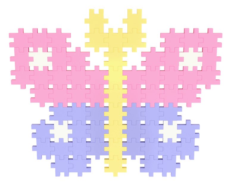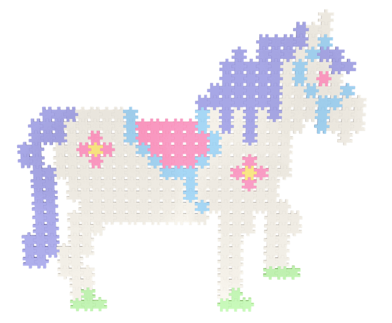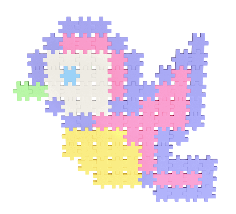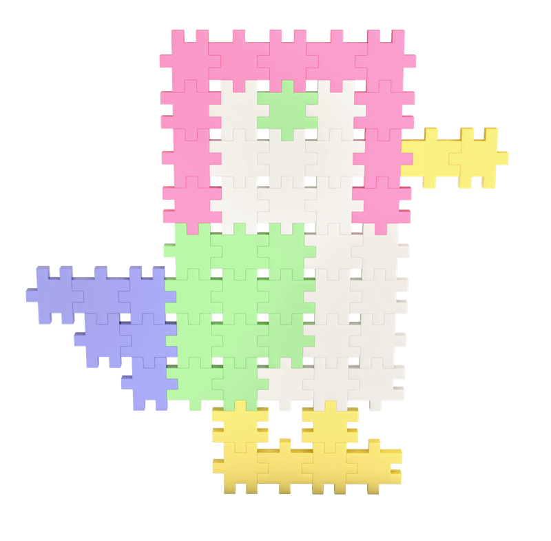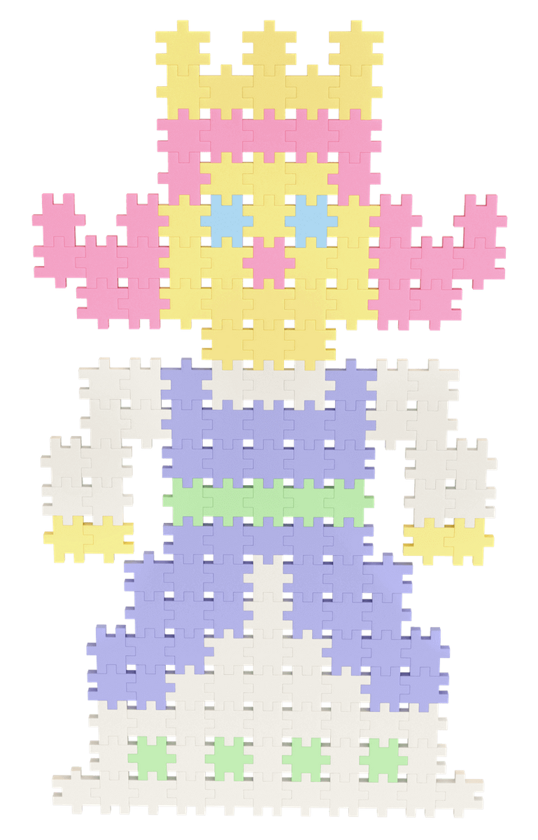 - Designed in the shape of a jigsaw puzzle, the pieces come together very easily to form fanciful compositions. Pastel colors and interesting stacking possibilities allow for a long creative playtime. Also included are inspiring instructions. Perfect for a