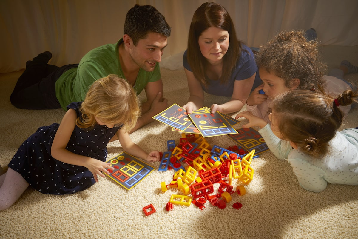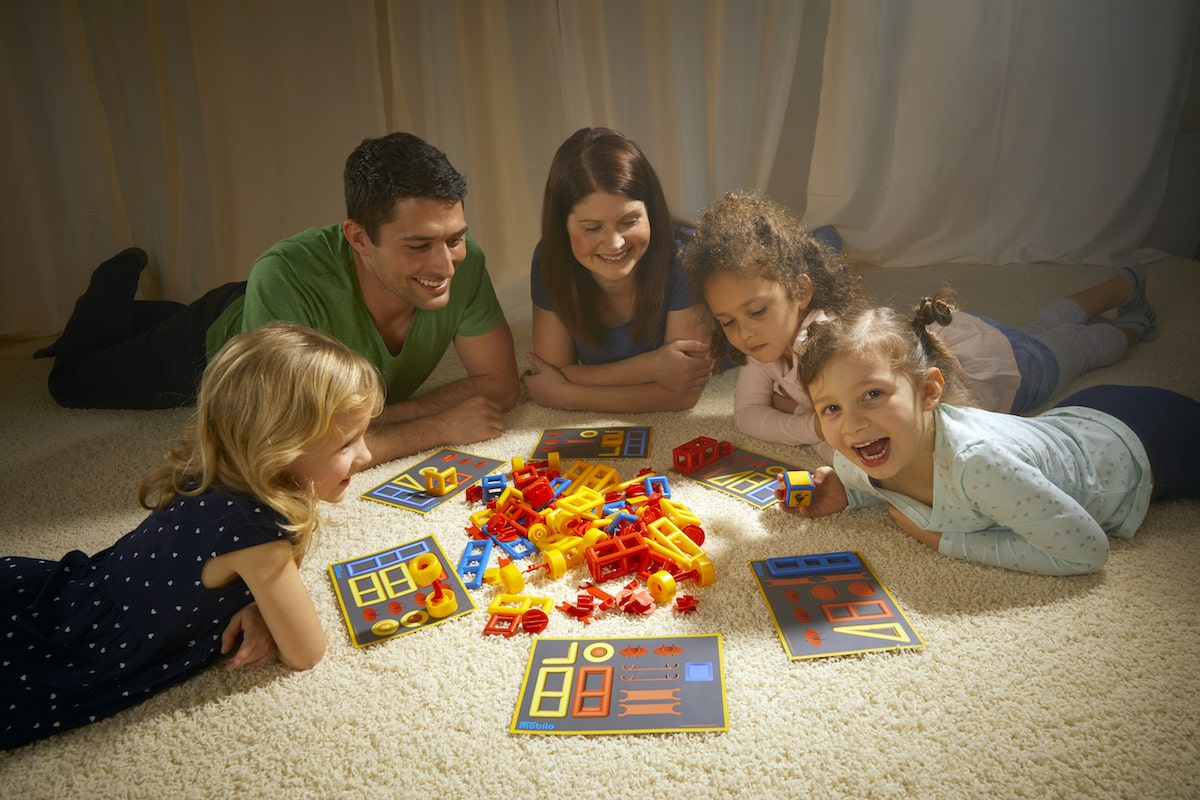 - Pattern cards and instructions with inspiring examples of structures to build,