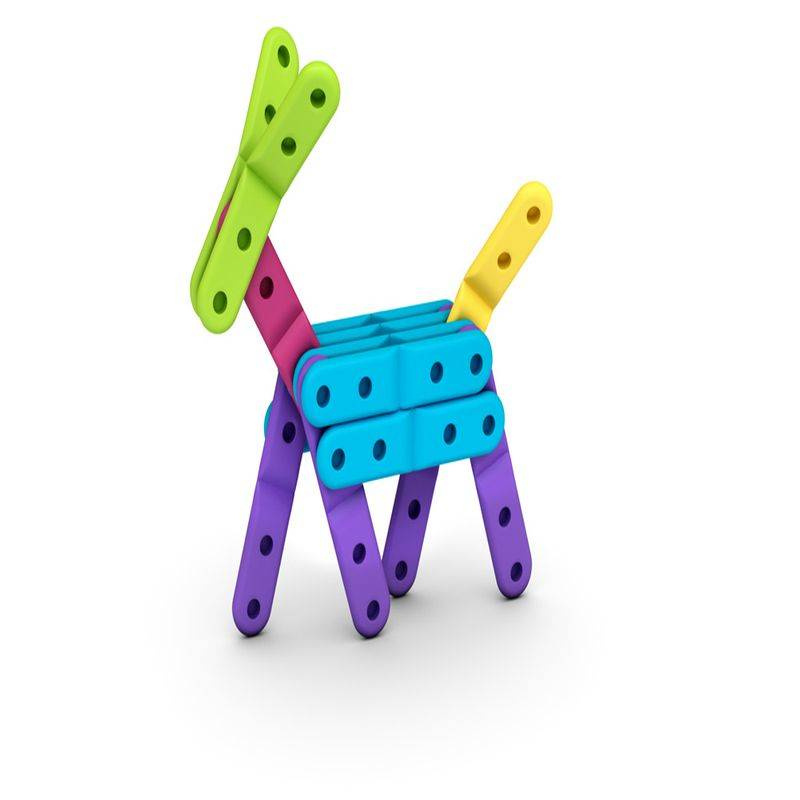 - Mublo bricks set contains 50 pieces made of soft, safe plastic. Pieces in the shape of strips that bend in the middle will provide your child with endless possibilities to create spatial constructions.