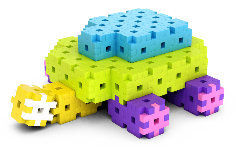 - The set contains 110 blocks in pastel colors packaged in a practical container with a handle,