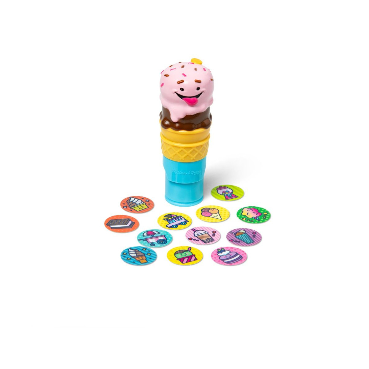 Sweet adventure with the set Sticker WOW! from Melissa & Doug is at your fingertips. This smiling ice cream-shaped stamper allows kids to create tasty stickers in one squeeze! Simply apply the stamp to any surface and a colorful sticker with a motif of ice cream, desserts and sweet treats appears. Each time a different, equally appetizing sticker!
