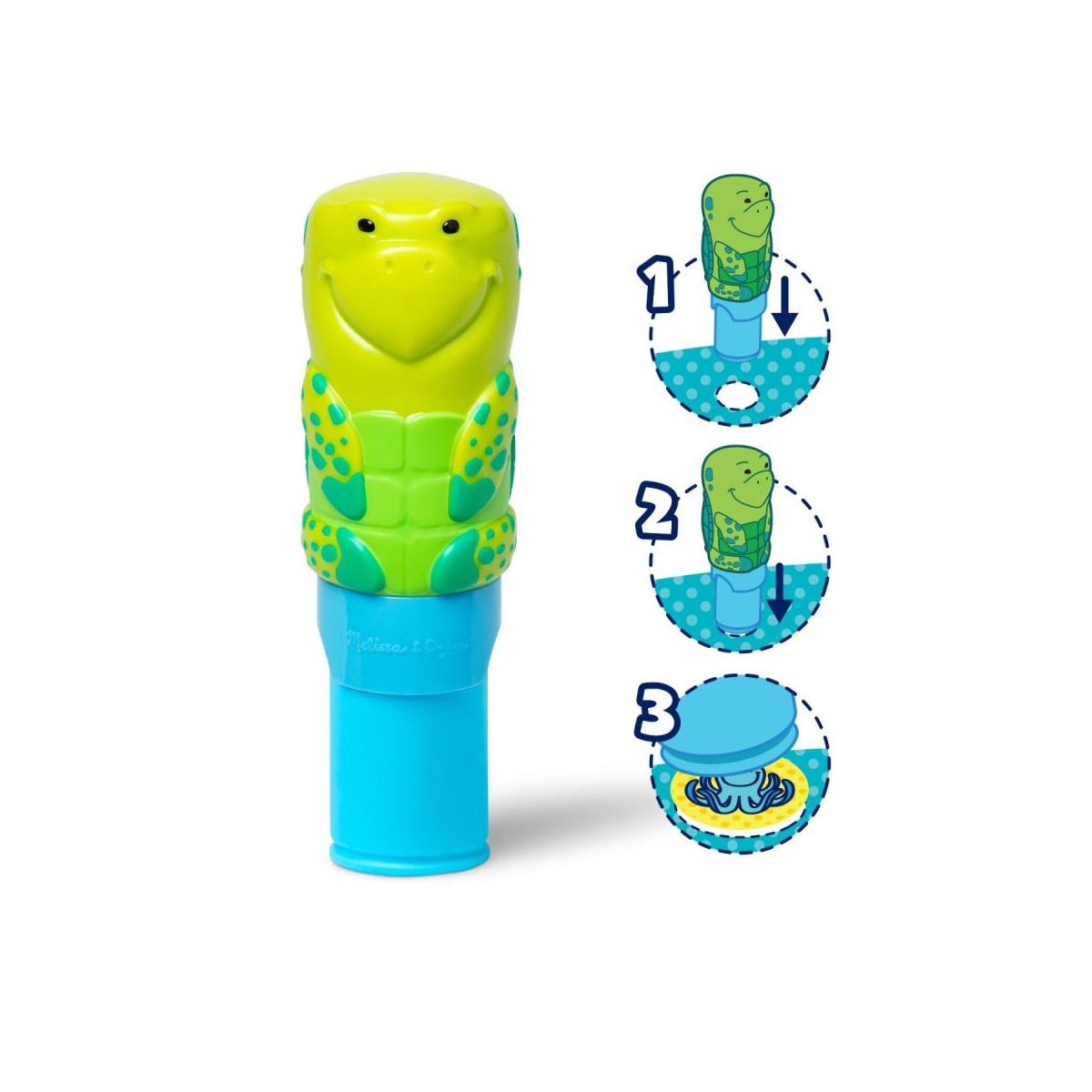 Underwater adventure with an extraordinary set Sticker WOW! from Melissa & Doug already waiting for your little one! This colorful stamp in the shape of a smiling sea turtle is a real revolution in the world of stickers for children. One squeeze is enough to conjure up a beautiful sticker with marine motifs. Each application of the stamp is a new and fascinating sticker!