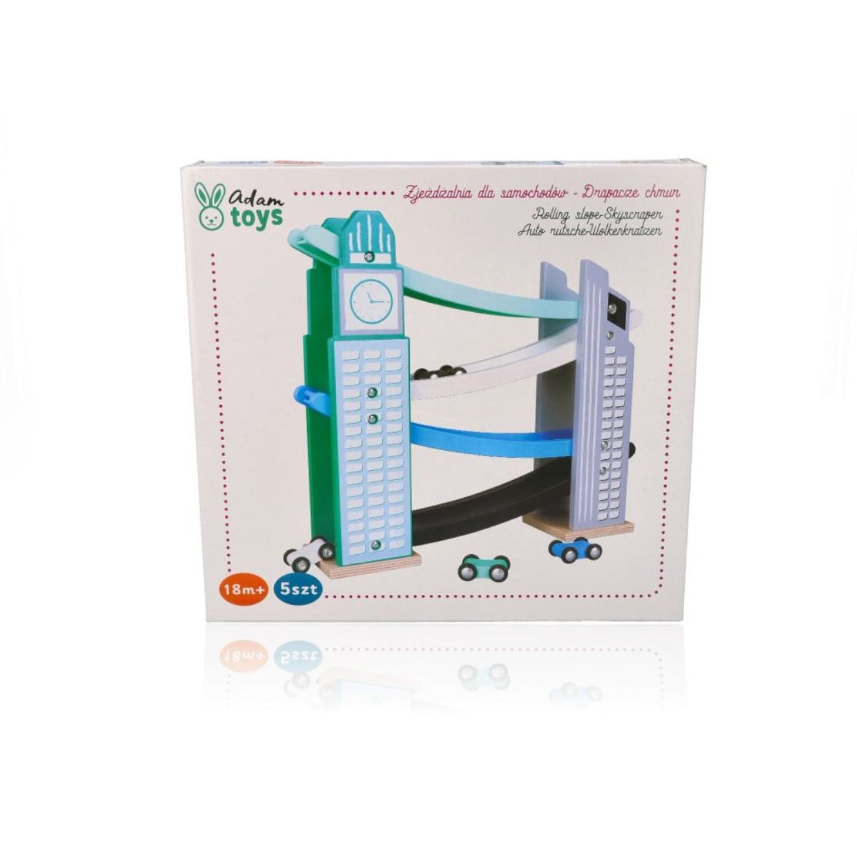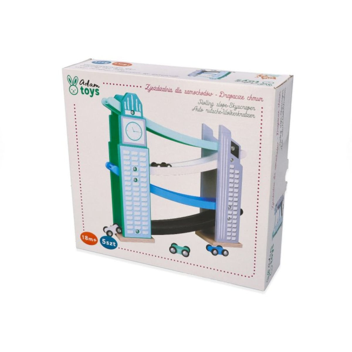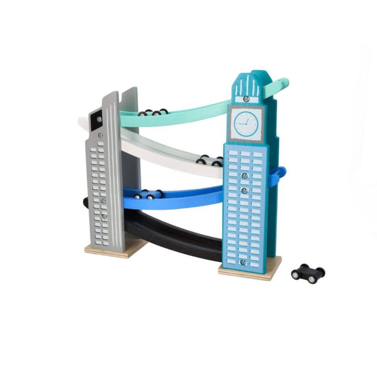 - Car Slide - Skyscraper is a fantastic toy for children as young as 18m+. Two majestic towers connected by four colorful tracks provide exciting fun with four cars. Any little car fan will be delighted!