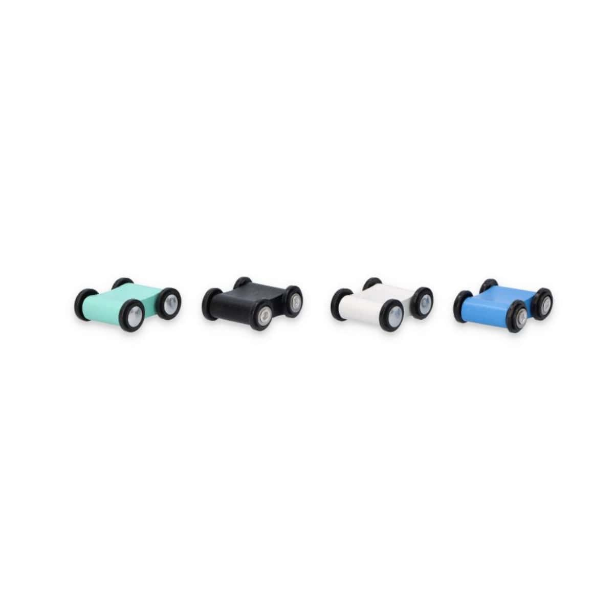 - The set includes: 1 base and 4 colored cars - all in muted, pleasing to the eye colors,