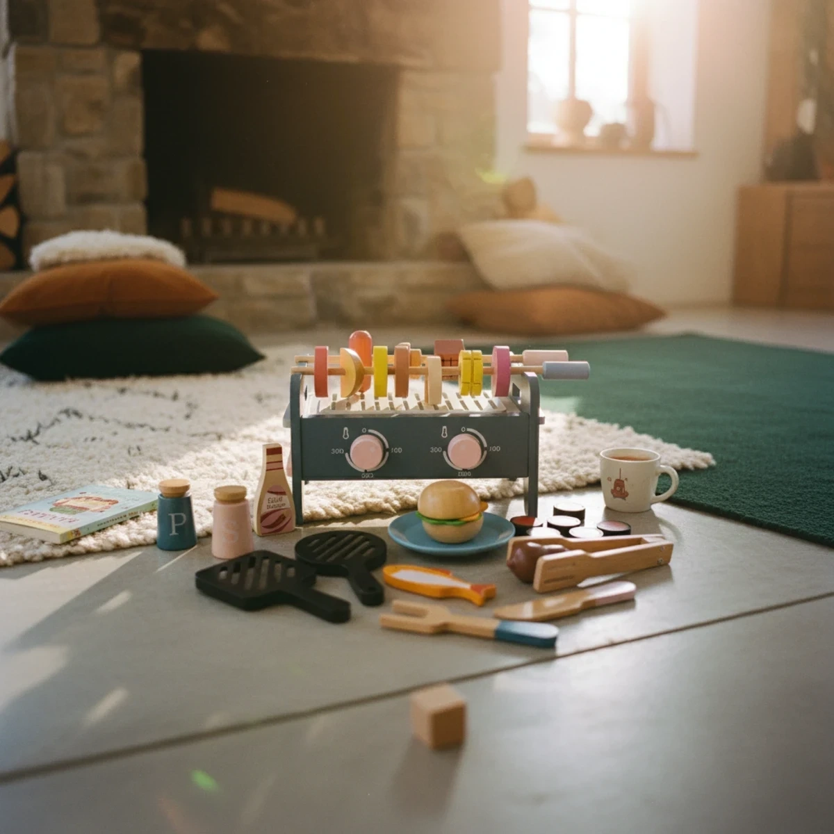 This wooden grill set encourages creative cooking scenarios, teaches food recognition, and promotes cooperative play. Children develop planning abilities by arranging menus and organizing barbecue parties with siblings or friends.