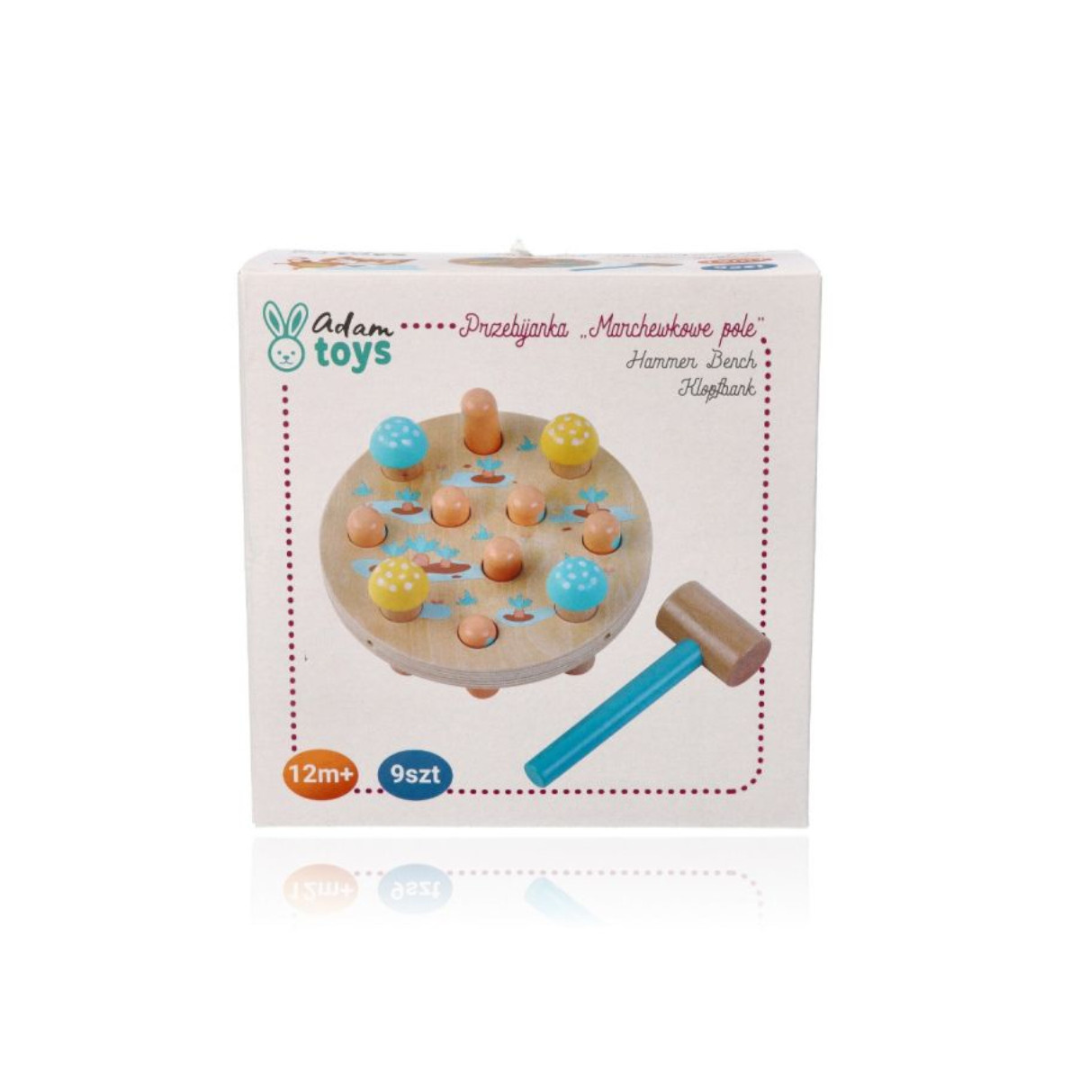 - Friendly colors, cheerful and thoughtful design, and simple form of this wooden nailing machine are a guarantee of cheerful and developmental fun. The toddler, by hammering the pieces with a hammer in a fun way, will be able to develop motor skills.