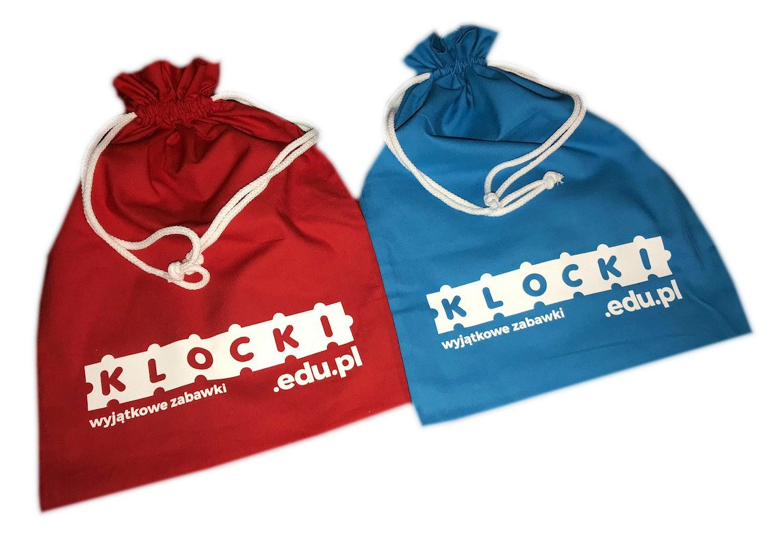 - Durable cotton (145g/m2) drawstring bag - pouch type. Blue or red color. Print blocks.edu.en. Makes it easy to store blocks. Easy to close and open with a convenient cord. The pouch holds about 9l of blocks.