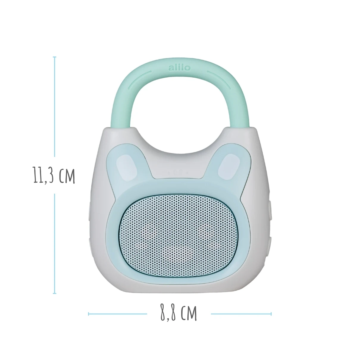 Your child's musical travel companion in a cute blue and mint color scheme