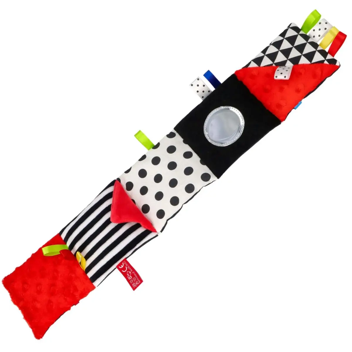 - Soft toy that stimulates sensory development from the first days of life. Contrasting patterns and a variety of textures provide excellent sensory stimulation. Interactive elements arouse curiosity. Ideal as a first gift for a toddler.