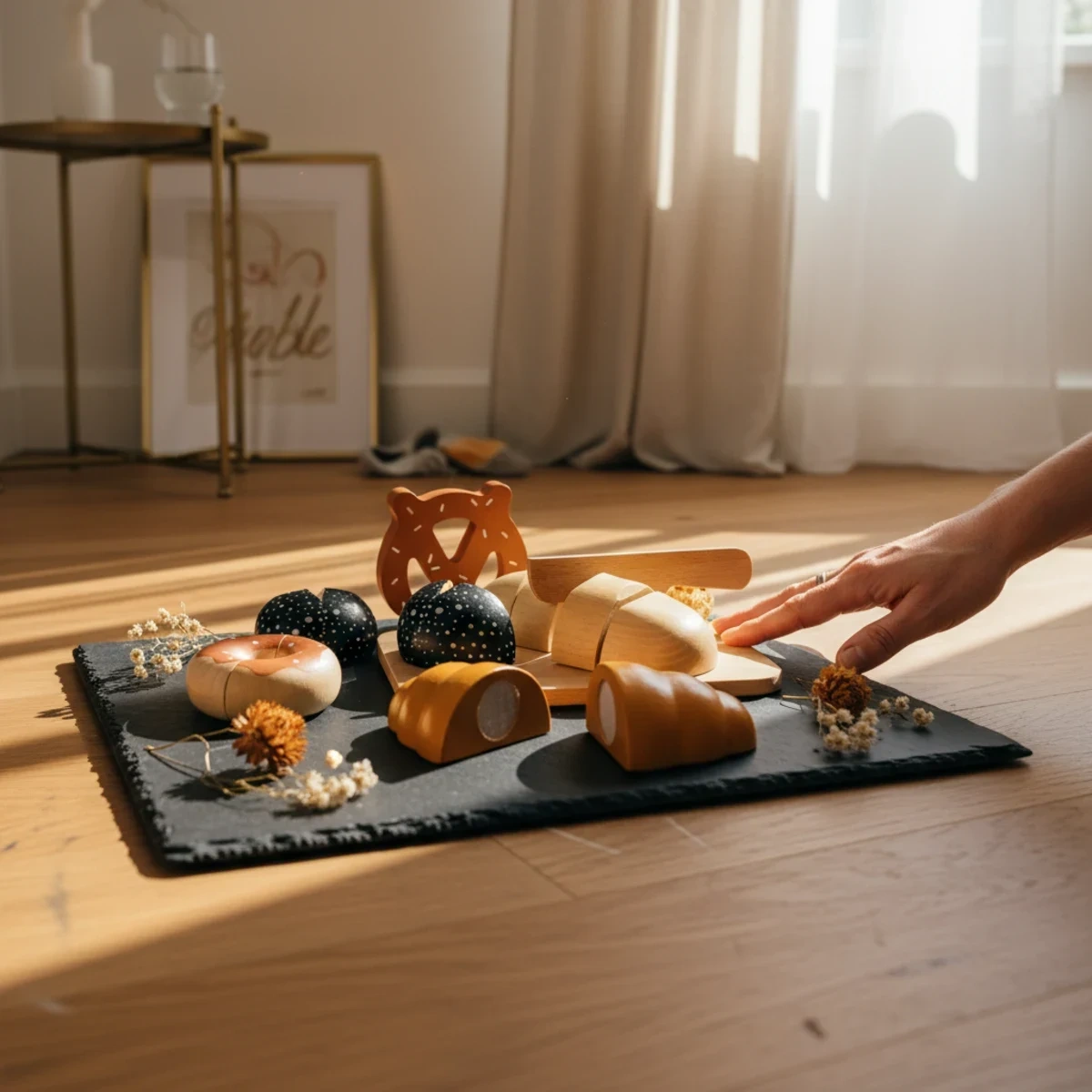 Zabawa w piekarnię angażuje wyobraźnię i kompetencje społeczne. Twoje dziecko naśladuje dorosłych, uczy się nazw 5 rodzajów pieczywa i trenuje zdolności manualne. To fundament kreatywności kształtowanej od 3. roku życia – zgodnie z ideą zabawek sensorycznych.