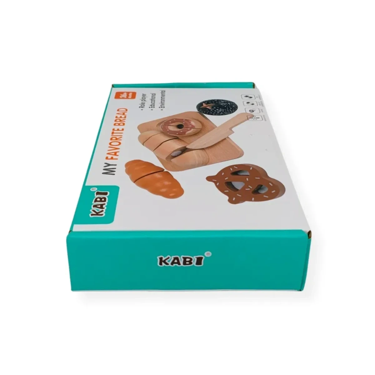 Drewniany zestaw do krojenia pieczywa Kabi to zabawka edukacyjna dla dzieci od 3 lat, która rozwija motorykę małą i wyobraźnię. Zestaw zawiera 7 elementów: 5 rodzajów pieczywa, deskę do krojenia i drewniany nóż połączone na rzep.