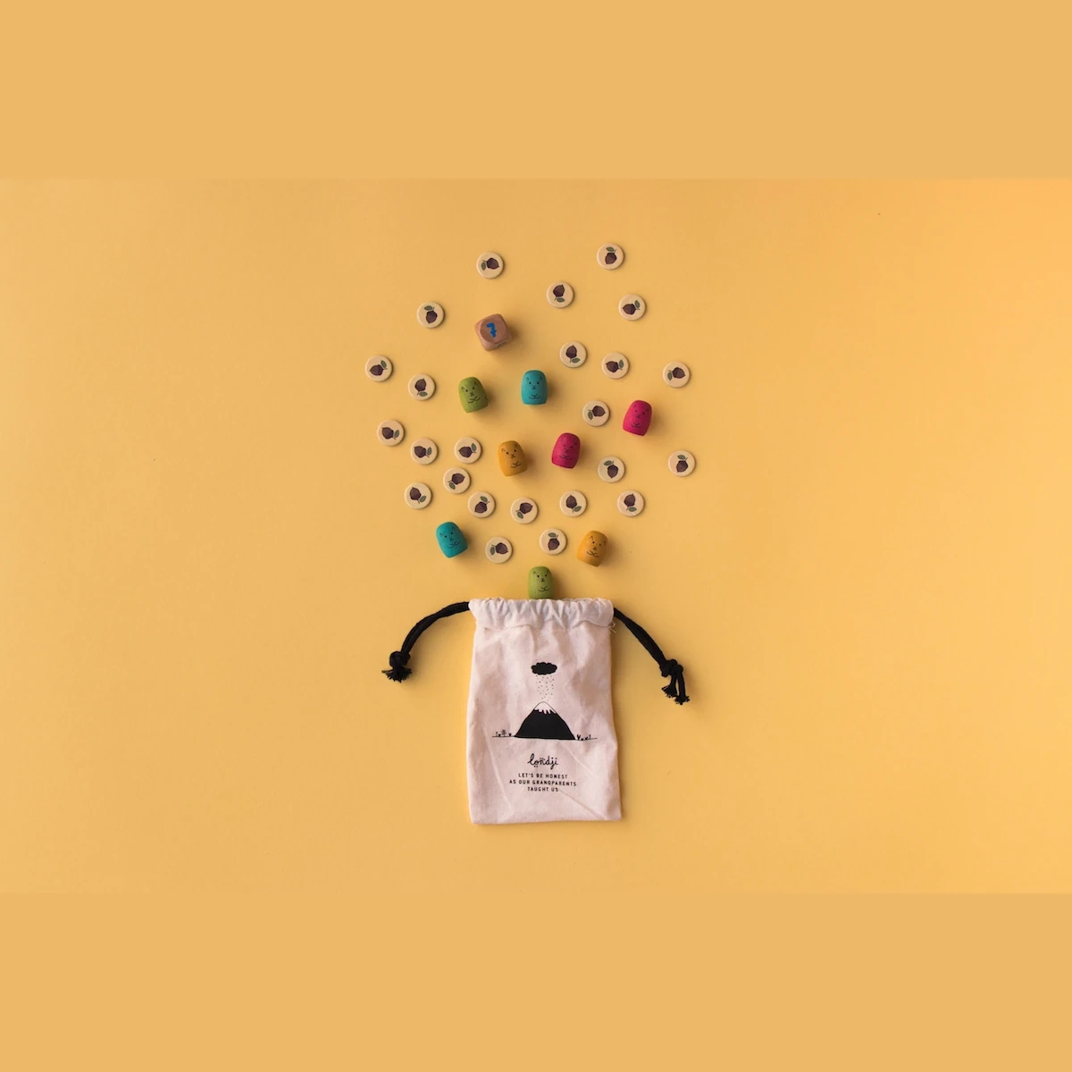 W zestawie znajdziesz planszę do gry z dwiema wersjami (dla 2 graczy i dla 3-4 graczy), 8 drewnianych wiewiórek w czterech kolorach (żółty, czerwony, niebieski, zielony), 24 żetony z żołędziami oraz kostkę do gry. Wszystko zapakowane jest w solidne kartonowe pudełko o wymiarach 24 x 24 x 8 cm z pięknymi ilustracjami autorstwa Can Seixanta, charakterystycznymi dla stylu Londji – łączącymi retro estetykę z nowoczesnymi motywami natury.
