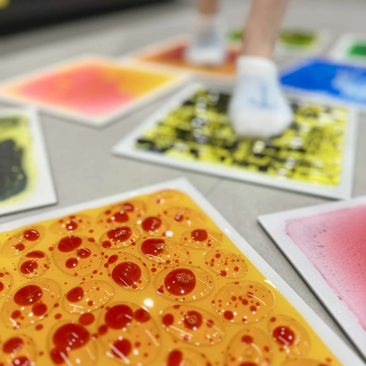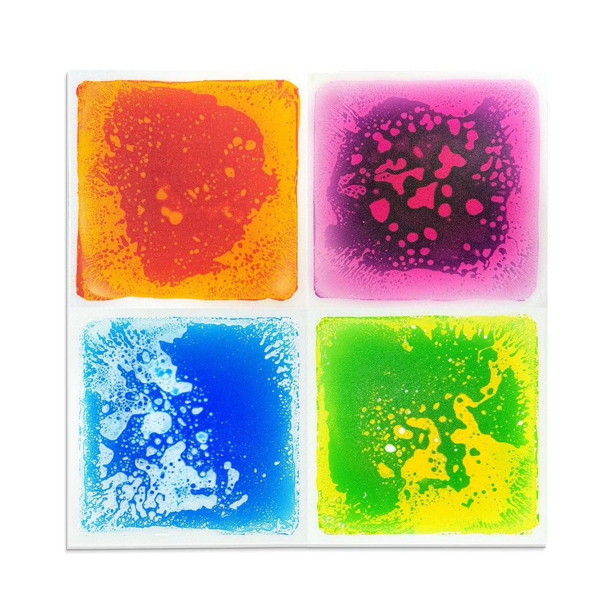 Płynne maty sensoryczne Tullo to innowacyjne zabawki edukacyjne wypełnione kolorowym żelem, który tworzy fascynujące wzory pod naciskiem stóp czy dłoni. Każde nadepnięcie to nowa kompozycja barw i kształtów – jak spacer po żywym obrazie. Te maty sensoryczne 30x30 cm łączą zabawę z terapią, wspierając integrację sensoryczną i rozwój motoryczny dzieci od 3. roku życia.