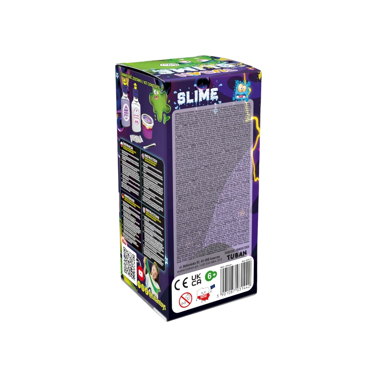 - Liczba elementów / wielkość zestawu: 5 elementów (100 ml fioletowego kleju PVA, 100 ml aktywatora, 1,5 g świecącego proszku, szpatułka do mieszania, pojemniczek do przechowywania SLIME)