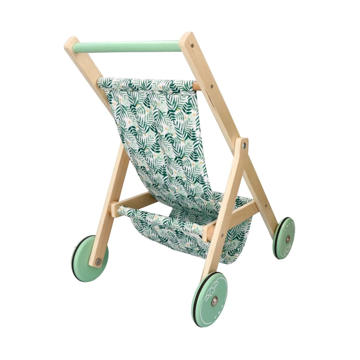 Zabawa w opiekę nad lalką rozwija empatię, odpowiedzialność oraz umiejętności społeczne dziecka. Spacerówka drewniana wyróżnia się stabilną konstrukcją wykonaną z certyfikowanego drewna, które jest przyjazne dla środowiska i bezpieczne dla maluszka. Duże kółka z gumowymi paskami antypoślizgowymi zapewniają płynne prowadzenie zarówno w domu, jak i podczas spacerów w parku. Siedzisko ozdobione delikatnym wzorem zielonych gałązek wprowadza naturalny akcent, który rozwija wrażliwość estetyczną dziecka.