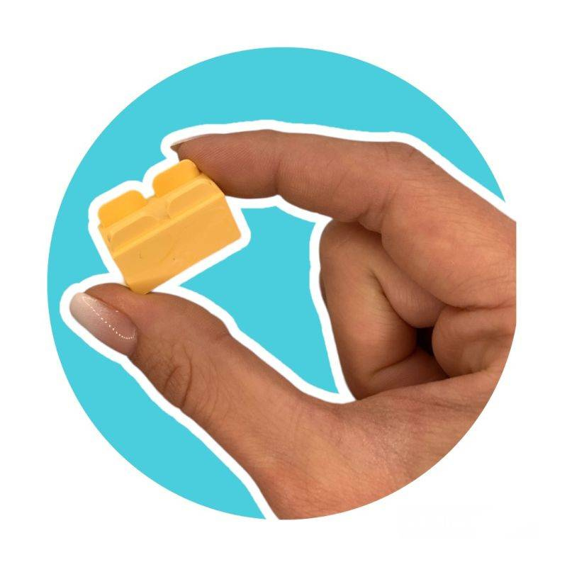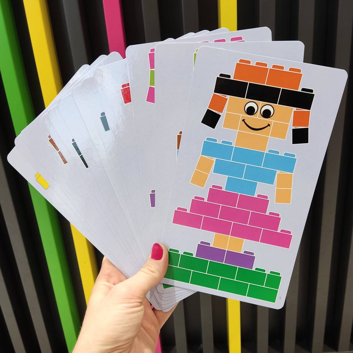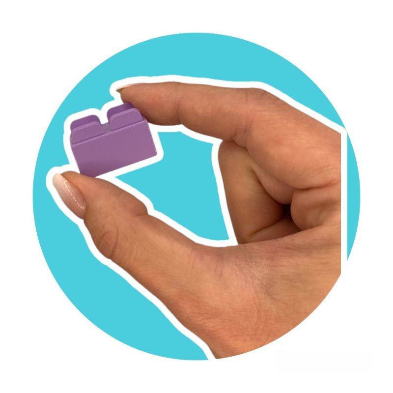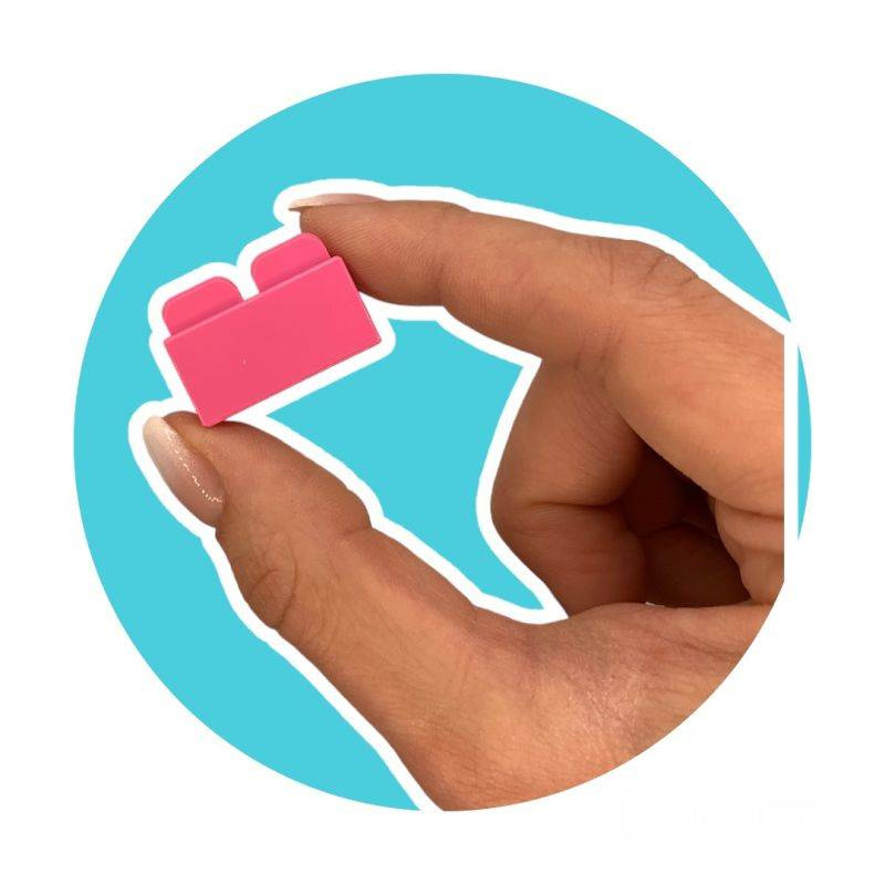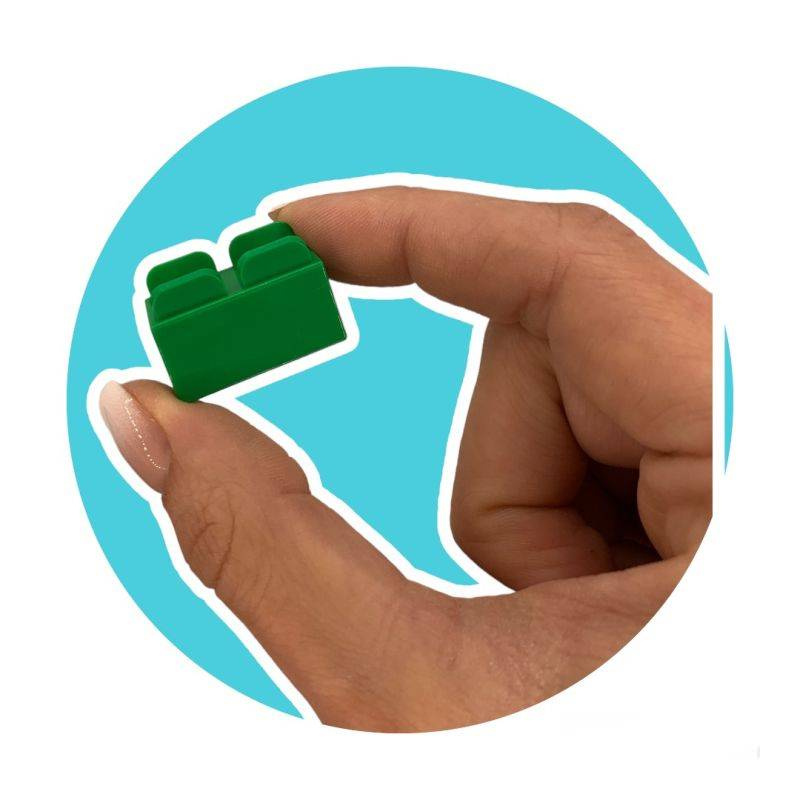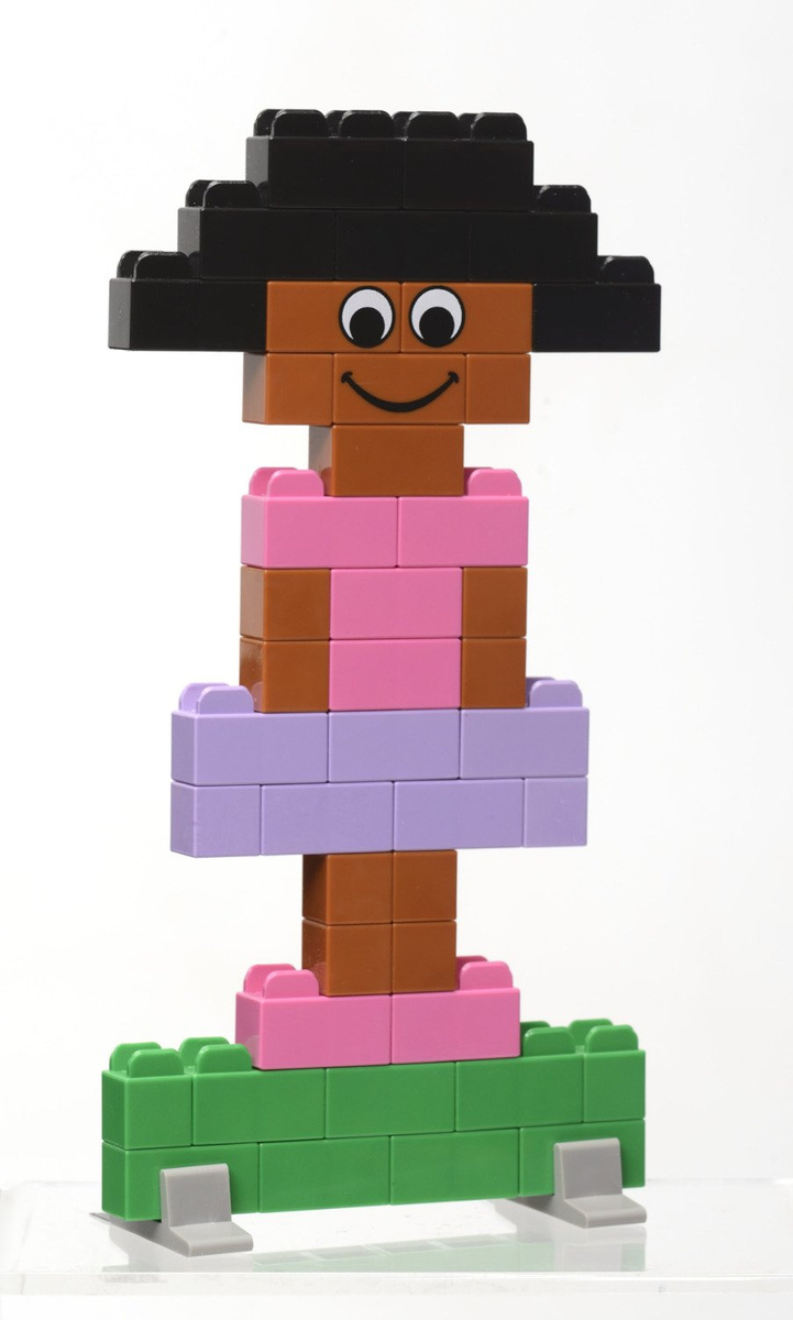 Co zawiera zestaw? 630 elementów w intensywnych kolorach, w tym klocki z oczami i buźkami, podstawki i ruchome części oraz 12 kart inspiracji.
