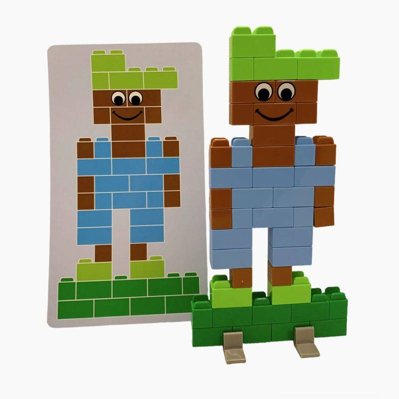 Postacie, zwierzęta, pojazdy i domki – jednocześnie kilka konstrukcji. 12 kart inspiracji pokazuje gotowe projekty krok po kroku.