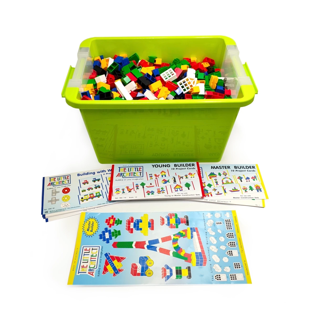 - Duży zestaw 950 kolorowych klocków Little Architect Master Builder. Komplet zawiera 26 instrukcji. Rozwija kreatywność i myślenie przestrzenne. Dla dzieci 4+. CE. Wyprodukowane w Australii.