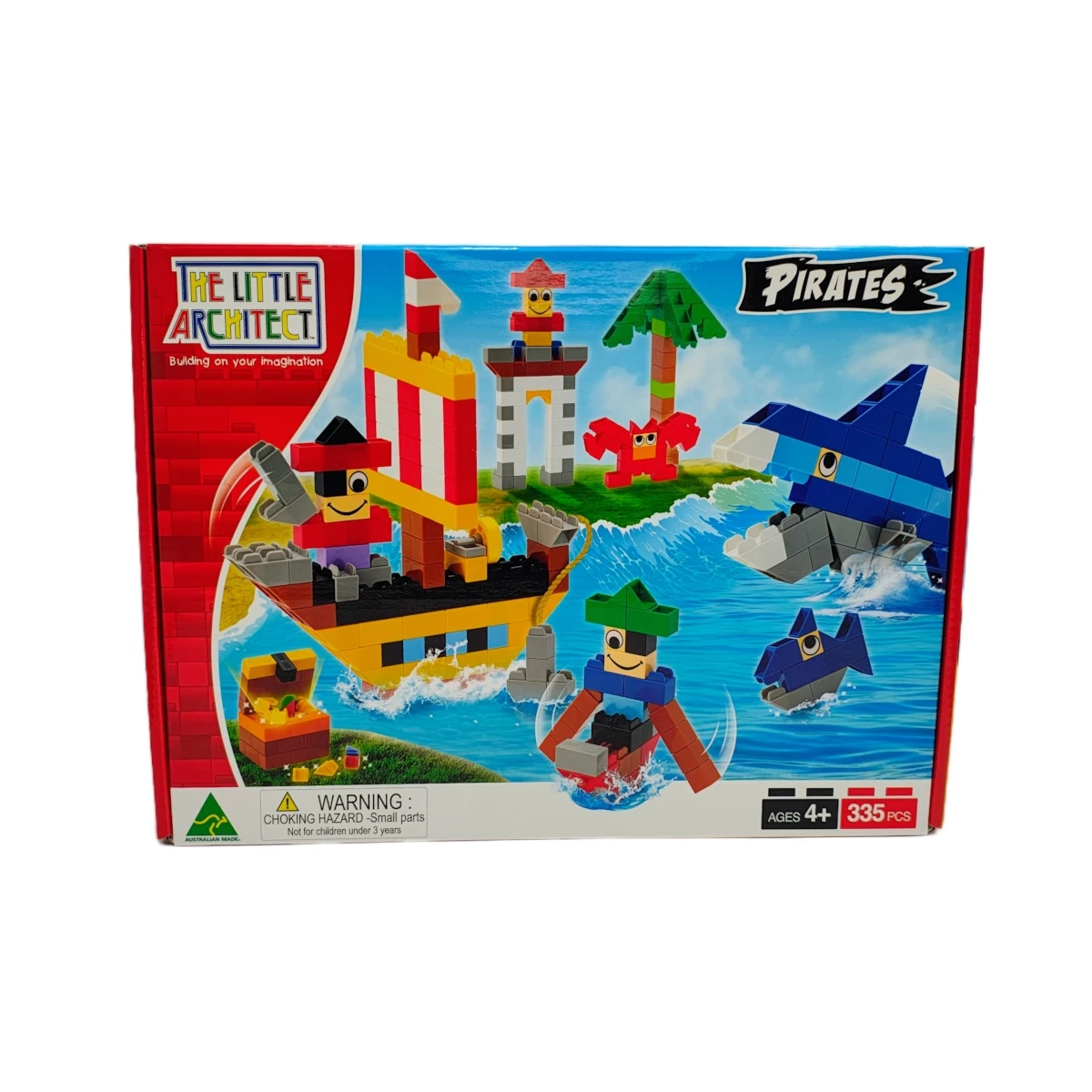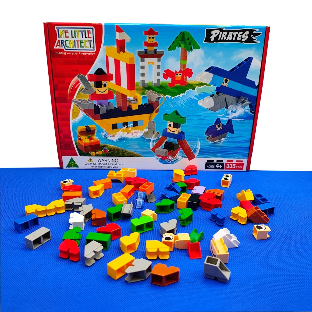 - 335 kolorowych klocków w pirackim stylu! Statek piracki, piraci, rekiny, wyspa ze skarbem. Wysoka australijska jakość dla dzieci 4+. Rozwija wyobraźnię, motorykę i logiczne myślenie. Godziny przygód na morzu!
