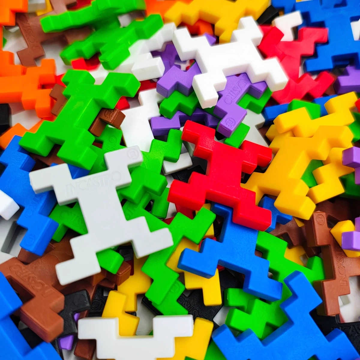 Klocki konstrukcyjne Incastro to zabawki budowlane, które wyróżniają się innowacyjnym systemem łączenia. Każdy element ma wymiary 3,5 x 3,5 x 0,5 cm i pasuje do pozostałych na wiele sposobów. Już z 4 klocków Twoje dziecko ułoży aż 16 różnych kombinacji, co pobudza wyobraźnię przestrzenną.