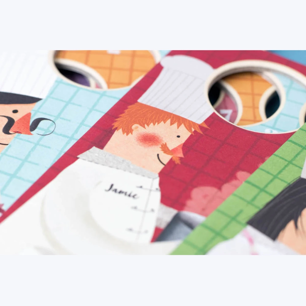 - Liczba elementów / wielkość zestawu: 80 elementów: kafelki składników, 1 plansza, 1 talerz do gry, instrukcja