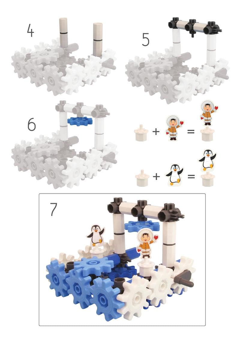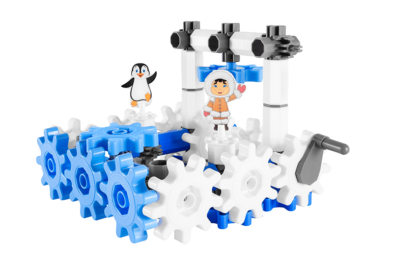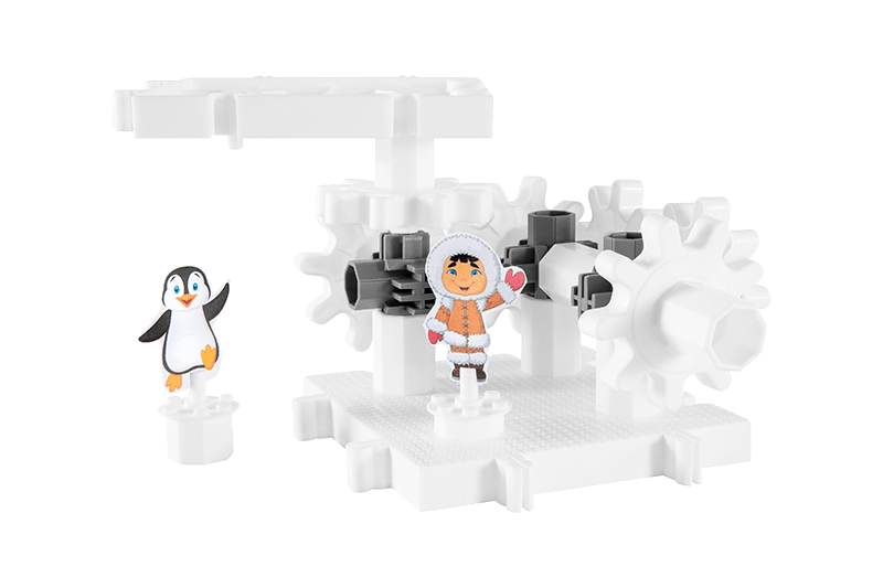 Budowanie igloo z otwieranym dachem, dwóch skuterów śnieżnych, ratraków i ruchomej góry lodowej angażuje koordynację oko-ręka, myślenie logiczne i wyobraźnię przestrzenną. 20 figurek zachęca do zabawy tematycznej – dziecko tworzy własne historie z życia Arktyki.