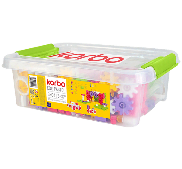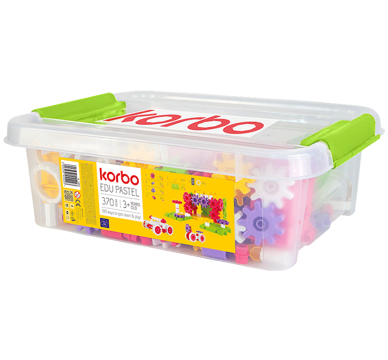 W kategorii zabawek konstrukcyjnych klocki konstrukcyjne Korbo wyróżniają się mechanizmem kół zębatych i trwałością wykonania. Zestaw zawiera 370 elementów w pastelowych barwach, w tym 20 platform oraz 20 opon. Twój młody konstruktor zbuduje pojazdy, karuzele i huśtawki z ruchomymi częściami.