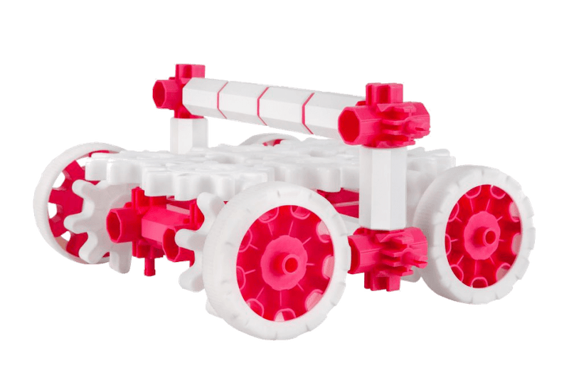 Co zawiera zestaw? 370 elementów w pastelowych kolorach, w tym platformy, koła zębate, opony, łączniki i korbki.