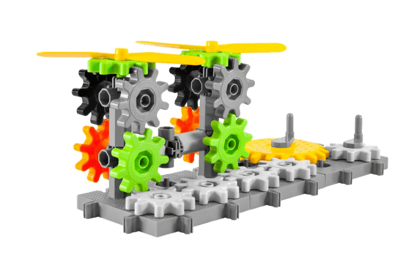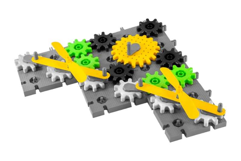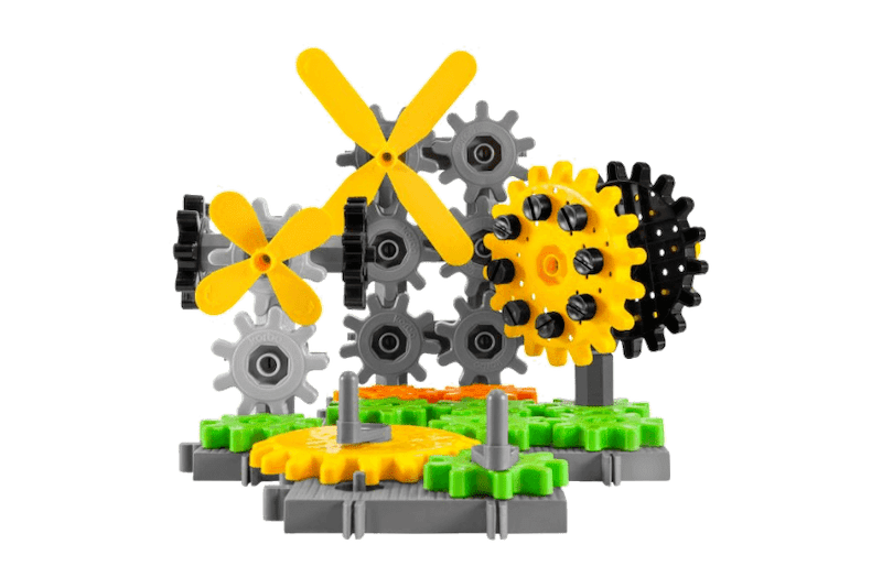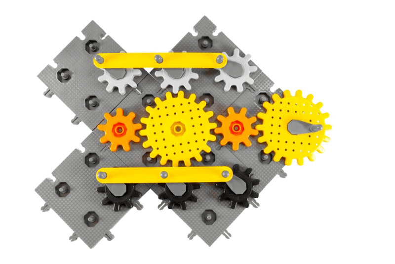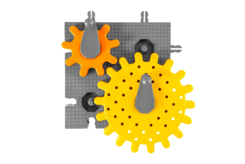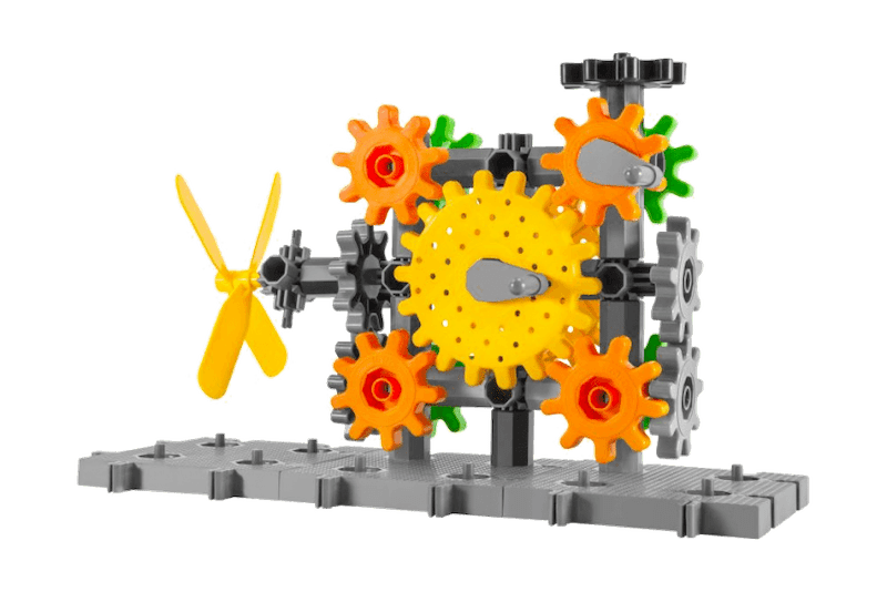 - Zaawansowany zestaw konstrukcyjny z 420 elementami i innowacyjnym systemem kół zębatych, który stymuluje rozwój logicznego myślenia u przedszkolaków. Barwne elementy umożliwiają tworzenie ruchomych pojazdów, zwierząt i maszyn inspirowanych techniką.