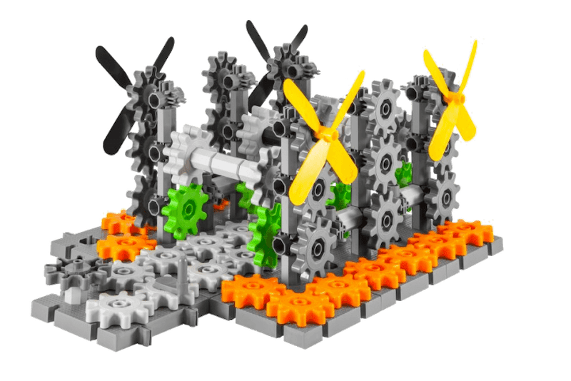 Co zawiera zestaw? 420 elementów, w tym 120 kół zębatych, 190 łączników, 22 korbki i 20 podstawek.