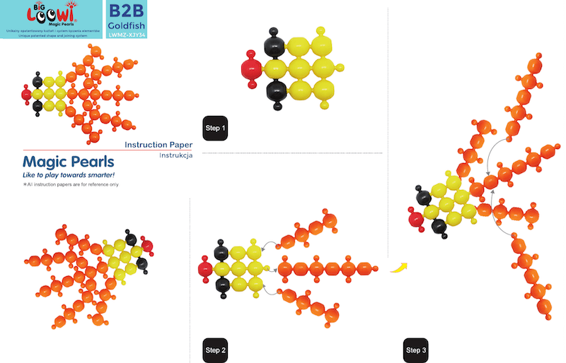 • Zestaw konstrukcyjny Loowi i Big Loowi z 200 elementami dla dzieci od 3 lat. W pudełku kulki 55 mm, duże kulki 75 mm, łączniki, koła i 10 instrukcji A4. Rozwija motorykę małą, koordynację oko-ręka i wyobraźnię przestrzenną. Certyfikat CE, norma EN-71.