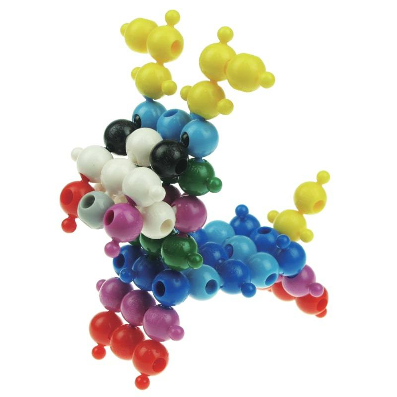 - Komplet zawiera 125 elementów w formie prostych w łączeniu, kolorowych kulek,