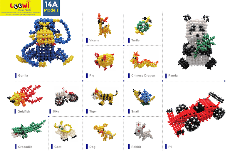 - Duży zestaw konstrukcyjny w kształcie kulek z 308 elementami i 10 kolorowymi instrukcjami A4, spakowany w praktyczny pojemnik z rączką. Klocki Loowi Zwierzęta 4+ rozwijają motorykę małą, myślenie przestrzenne i kreatywną zabawę dziecka