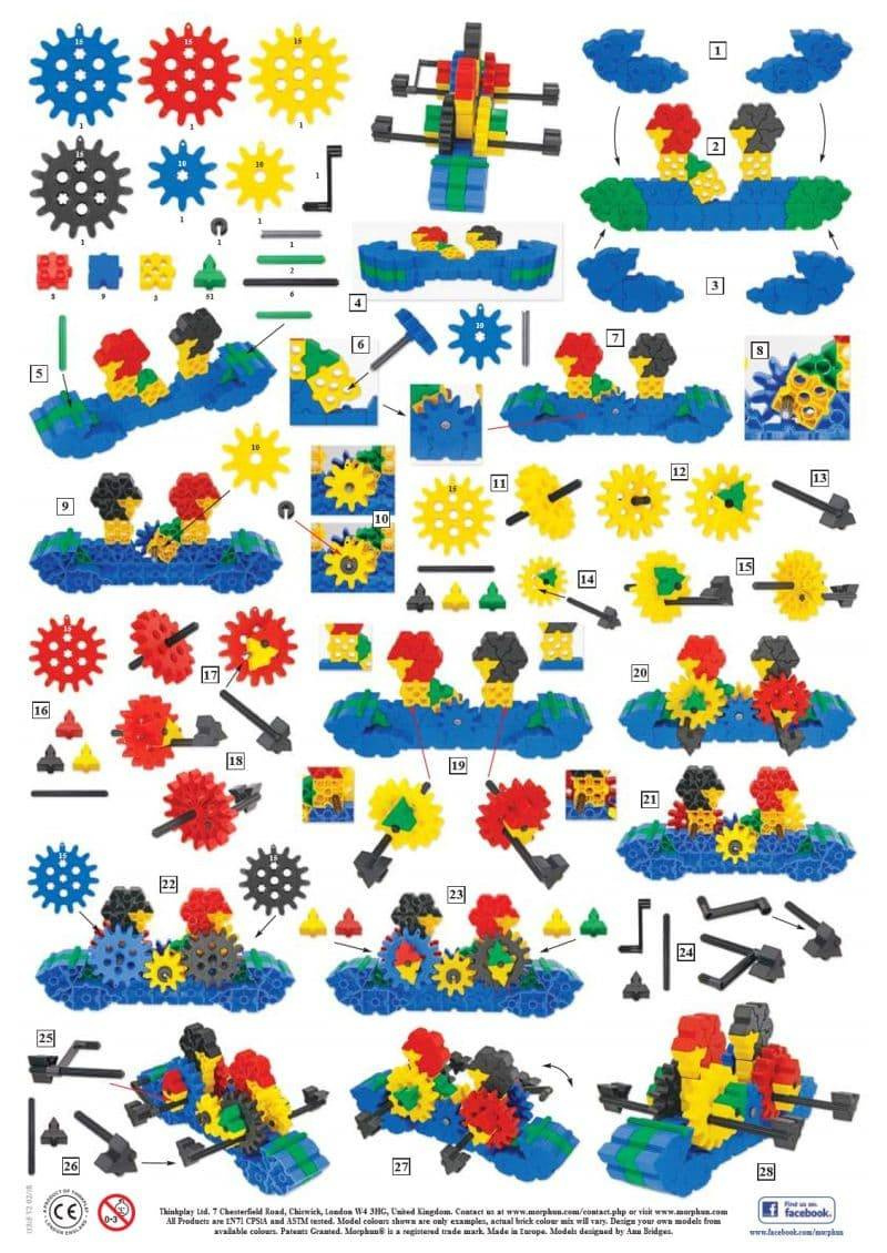 Zauważyłyśmy, że dzieci bawiące się GearPhun trenują motorykę małą, ćwiczą koordynację oko-ręka i rozwijają wyobraźnię przestrzenną. Kolorowa 4-stronicowa instrukcja A4 pomaga w pierwszych konstrukcjach, a potem dziecko tworzy własne pomysły.