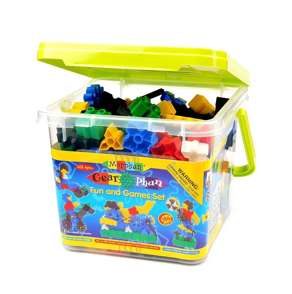 Klocki konstrukcyjne Morphun GearPhun to zestaw edukacyjny dla dzieci od 4 lat, który rozwija logiczne myślenie przez budowanie ruchomych mechanizmów. 186 elementów z 5 wielkościami kół zębatych.