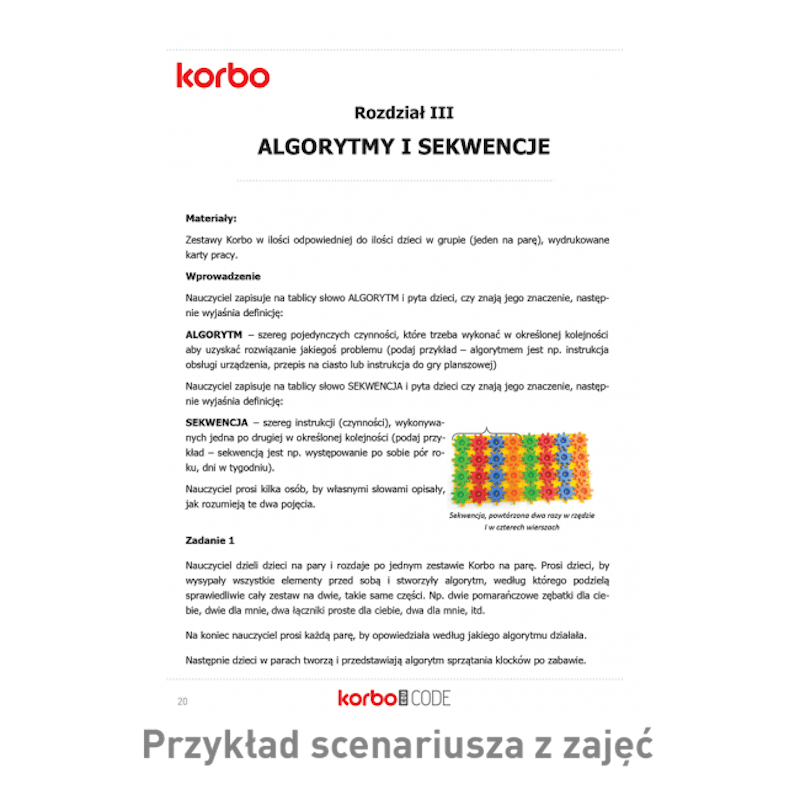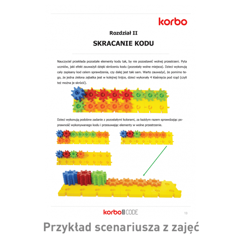 - Zestaw konstrukcyjny do nauki kodowania offline – bez komputera i robota. 420 dużych klocków, 40 platform roboczych i książka z 82 stronami scenariuszy lekcji na cały rok szkolny. Rozwija myślenie komputacyjne, logikę i pracę zespołową u dzieci 6+.