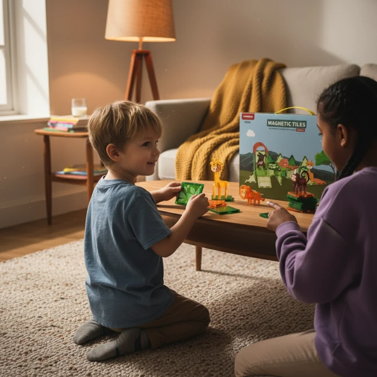 • Zestaw 30 przezroczystych klocków magnetycznych dla dzieci z motywem dżungli zawiera kolorowe płytki geometryczne w odcieniach zieleni i pomarańczowego oraz 3 figurki zwierząt. Rozwija myślenie przestrzenne i kreatywność u dzieci od 3 lat.