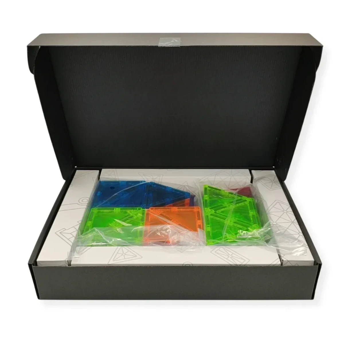 Klocki wykonane są z przezroczystego plastiku ABS w technologii high-gloss z błyszczącym wykończeniem. Magnesy neodymowe gwarantują mocne połączenia i stabilność budowli. Produkt posiada certyfikaty CE, EN-71 i ASTM, co potwierdza bezpieczeństwo materiałów.