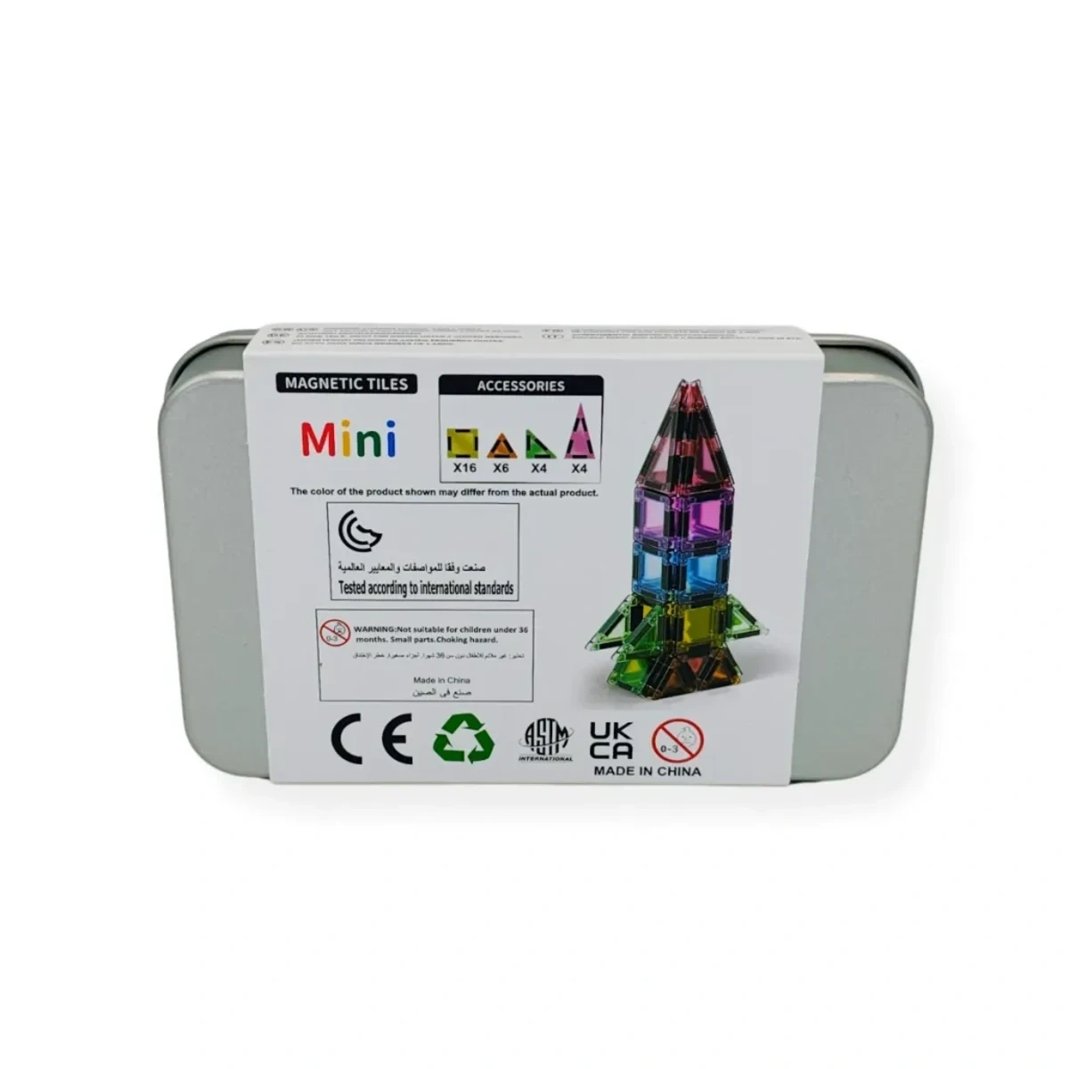 W porównaniu z klasycznymi zabawkami magnetycznymi, płytki Mini wyróżniają się kompaktowością – można je zabrać wszędzie. Bezpieczny plastik ABS jest wolny od toksycznych substancji, a certyfikaty CE, ASTM i UKCA potwierdzają zgodność z normą EN-71.