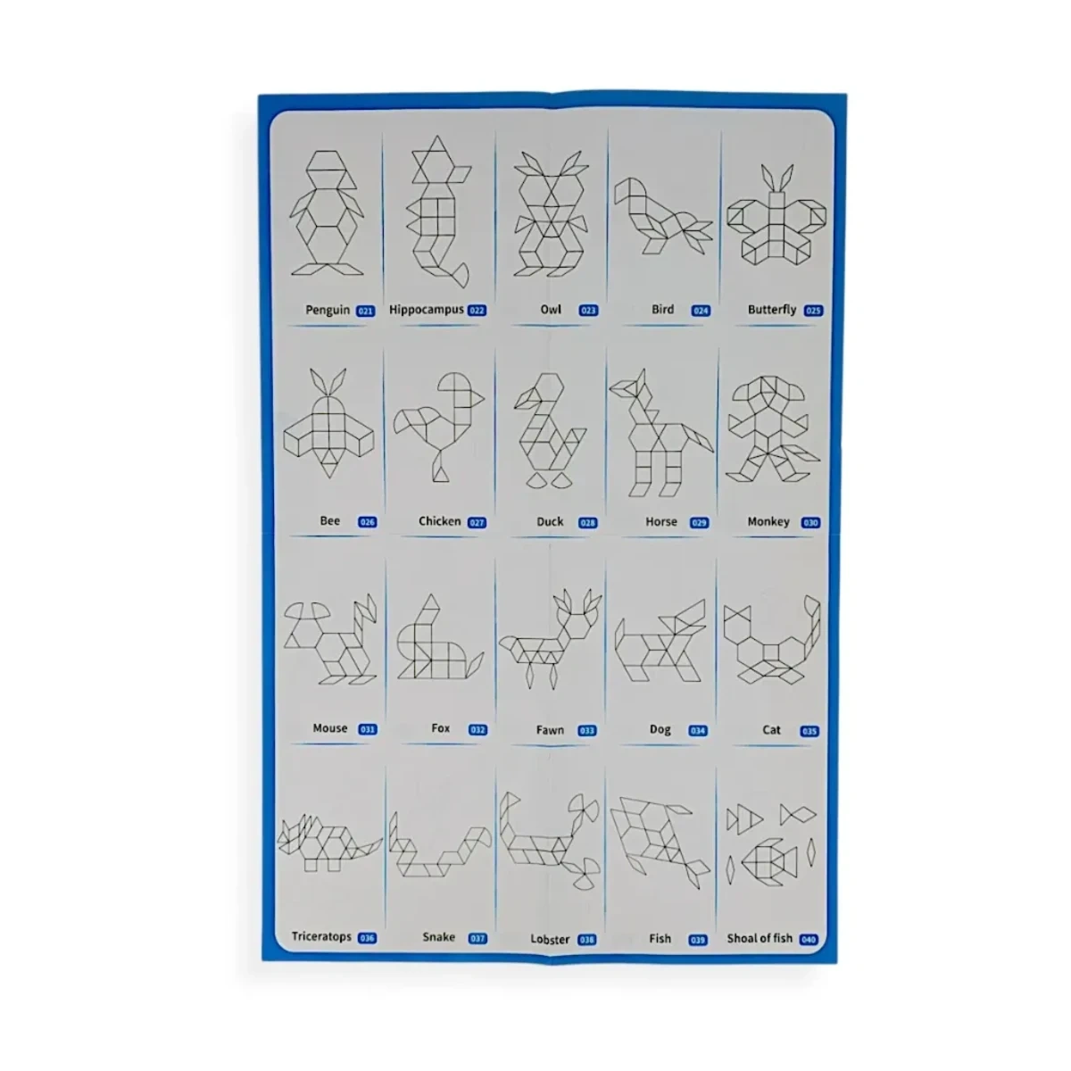 W porównaniu z klasycznym tangram puzzle, wersja magnetyczna wyróżnia się planszą z niebieską ramką, na której elementy nie przesuwają się podczas układania. To kluczowa zaleta dla dzieci w wieku 3–5 lat ćwiczących koordynację wzrokowo-ruchową. Zabawa wg metody STEAM łączy matematykę, sztukę i rozwiązywanie problemów — fundament kreatywności i innowacyjności jako kompetencji przyszłości. Instrukcja zawiera 40 wzorów zwierząt i postaci (motyl, pingwin, koń, kot), zróżnicowanych poziomem trudności. Sprawdź również klocki konstrukcyjne jako uzupełnienie zestawu.