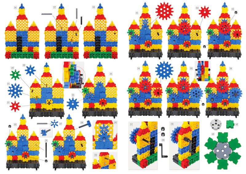 Co zawiera zestaw? 320 elementów: klocki bazowe, koła zębate różnej wielkości, przekładnie i łańcuchy.
