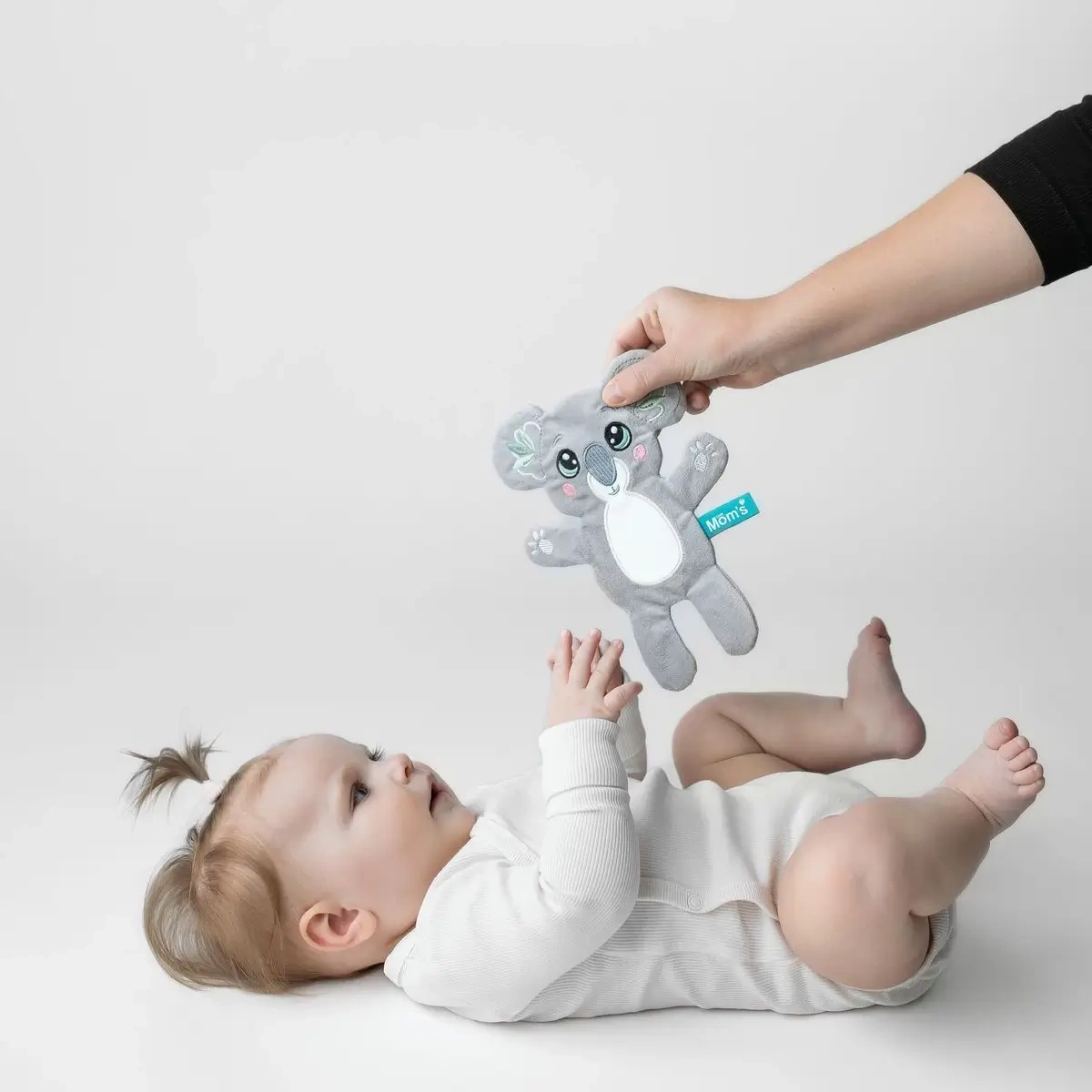 Płaska, lekka konstrukcja sprawia, że nawet najmłodsze niemowlęta mogą z łatwością chwytać, miętosić i przytulać Koalę, co doskonale wspiera rozwój motoryki małej. Manipulowanie zabawką wzmacnia mięśnie dłoni i palców, co będzie procentować w przyszłości podczas nauki chwytania przedmiotów, a później pisania.