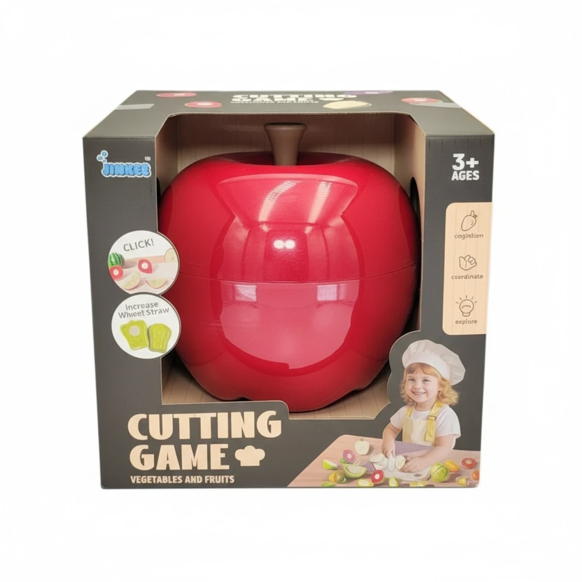 • Owoce i warzywa do krojenia 29 elementów Jinkee to kolorowa zabawka dla dzieci od 3 lat, która rozwija koordynację ręka-oko i rozpoznawanie produktów spożywczych poprzez kreatywną zabawę w kucharz z realistycznym efektem dźwiękowym