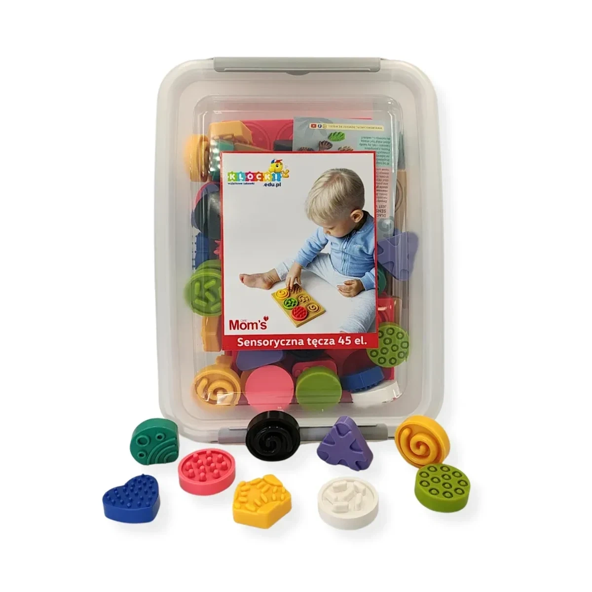 - ✅ 45 silikonowych elementów sensorycznych w zestawie