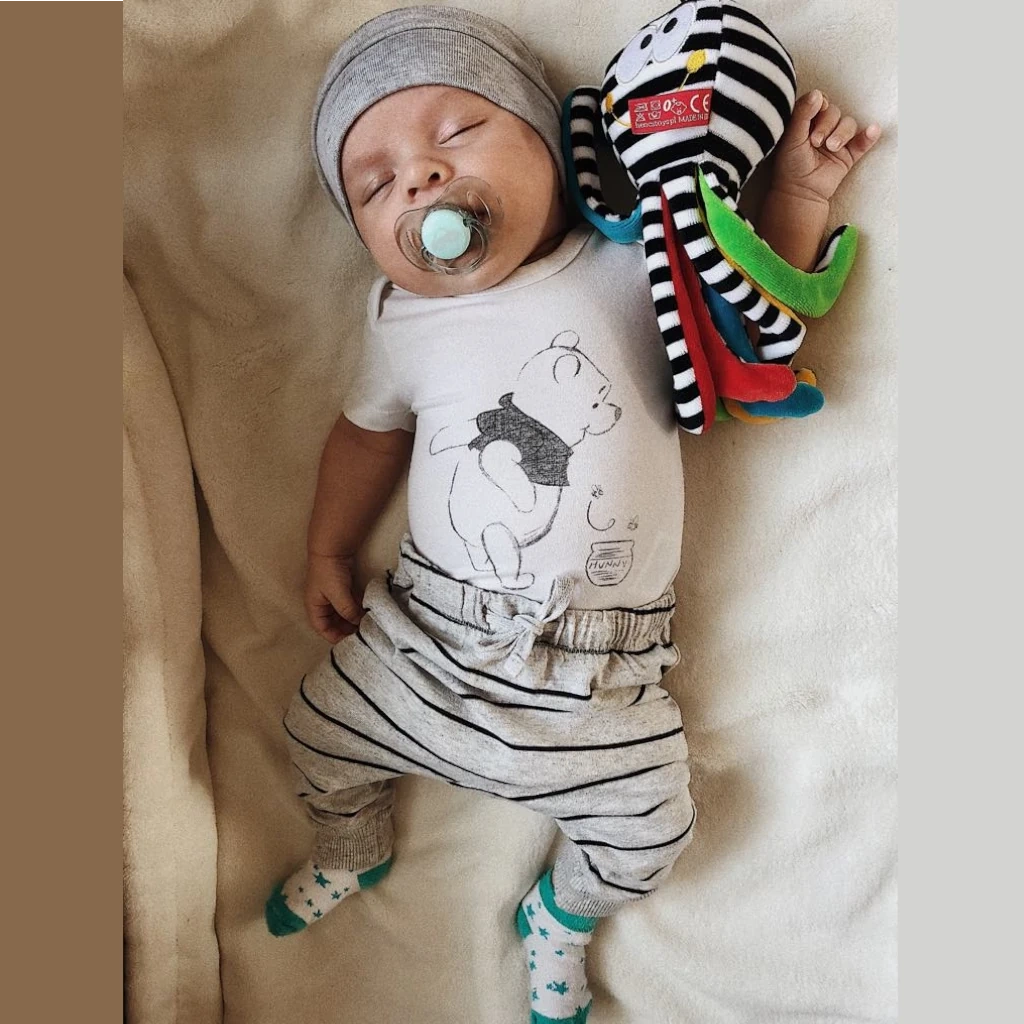 - Materiał: Miękka bawełna frotte przyjazna dla wrażliwej skóry dziecka